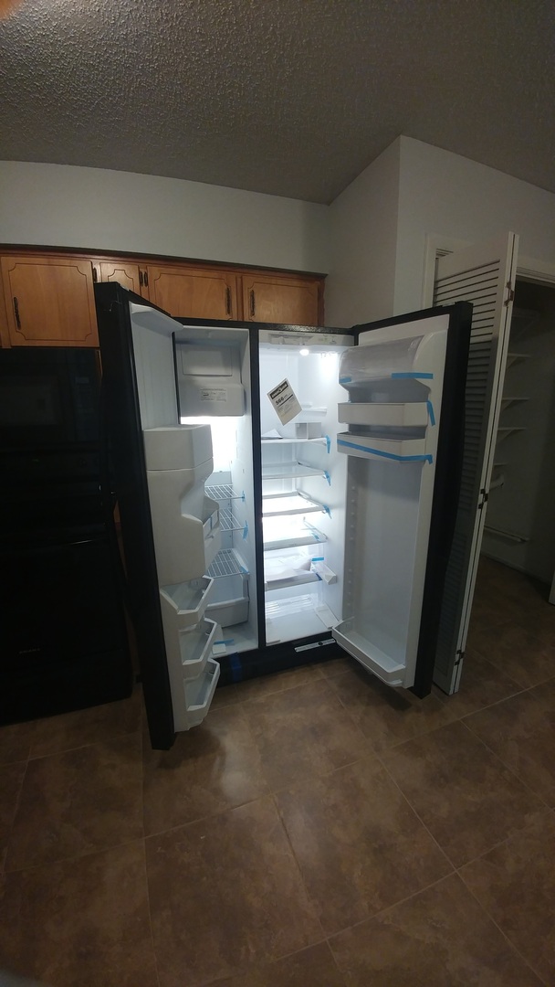 This move-in-ready two-bedroom, two-full-bath home offers stylish updates and plenty of space. The kitchen features sleek all-black, brand-new appliances and opens to a spacious family room with a cozy fireplace—perfect for staying connected while cooking or entertaining. A breakfast bar separates the kitchen and living areas, making it easy for guests to gather.